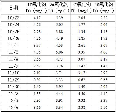 表3 各氧化溝實(shí)測(cè)DO數(shù)據(jù)