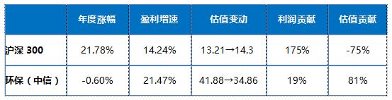 從驅(qū)動因素看,滬深300主要利潤增長貢獻、環(huán)保屬于去估值過程。