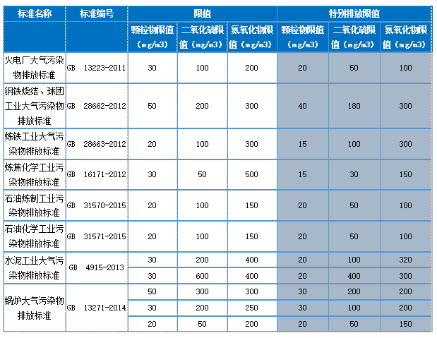 2)工業(yè)企大氣污染排放標準寬松,存在具體提升改進空間。國家已經(jīng)著手提高工業(yè)各行業(yè)的排放標準。