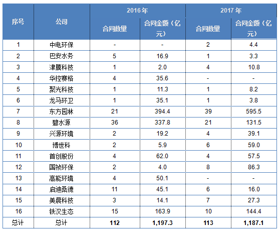 ①強者恒強:東方園林、鐵漢生態(tài)和碧水源三家公司連續(xù)兩年新簽PPP訂單超100億元,三家公司合計簽訂的PPP項目占全部上市環(huán)保公司的訂單總額的比重達到75%。