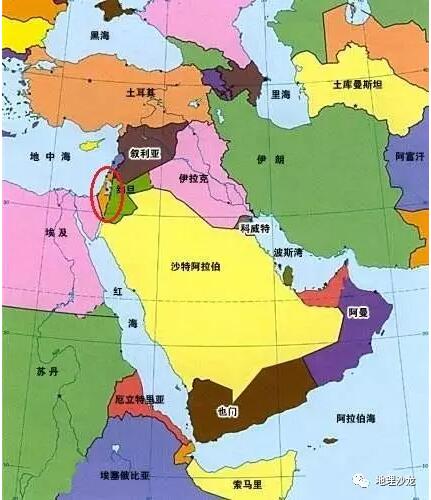中東地區(qū)圖(紅圈處為以色列)