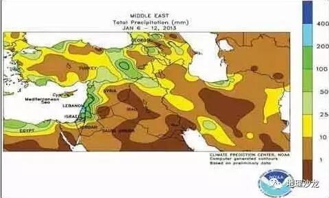 中東地區(qū)年降水量分布圖(單位:毫米)
