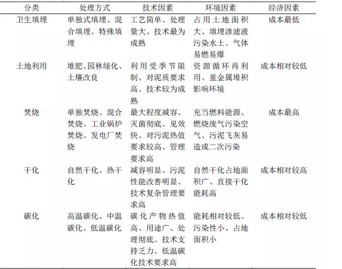 表4 常見(jiàn)污泥處置方式比較