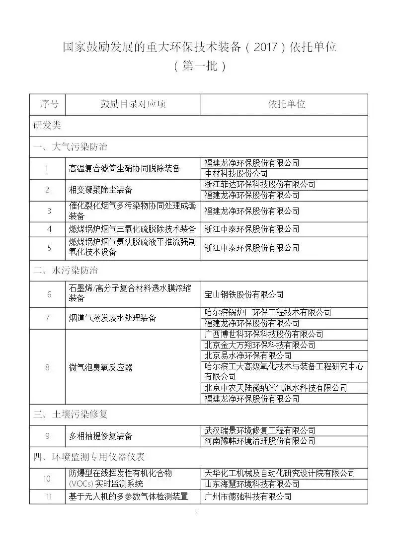 政策+市場(chǎng):環(huán)保裝備制造業(yè)更上一層樓。附:國(guó)家鼓勵(lì)發(fā)展的重大環(huán)保技術(shù)裝備(2017)依托單位(第一批)