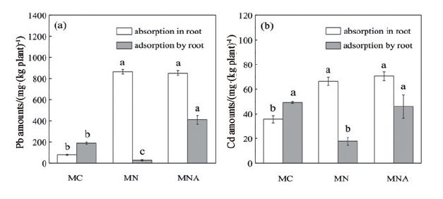 圖6不同化學(xué)試劑對植物根吸附和吸收Pb和Cd的影響