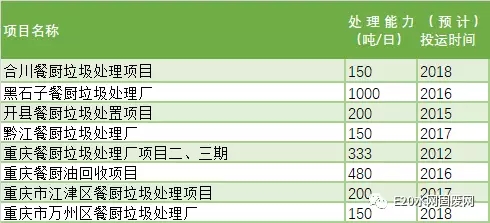 圖表 7 重慶市餐廚垃圾處理項(xiàng)目統(tǒng)計(jì)