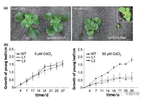 利用超積累植物修復(fù)重金屬污染土壤一直是研究學(xué)者們關(guān)注的焦點(diǎn)。區(qū)別于普通植物,超積累植物地上部可富集高濃度的重金屬。其可能作用機(jī)制為:超積累植物的根際對土壤重金屬活化效應(yīng);超積累植物對重金屬具有快速的吸收轉(zhuǎn)運(yùn)體系;超積累植物對重金屬具有強(qiáng)的解毒儲存能力。浙江大學(xué)Hou等對比研究重金屬超積累型和非超積累型植物的根際特征,發(fā)現(xiàn)與非超積累型植物相比,超積累型植物根際具有更為龐大的根系,土壤pH值較低,重金屬有效性高;根際土壤重金屬有效性與超積累植物特異的細(xì)菌群落具有顯著相關(guān)性,微生物群落功能分析(PICRUSt)超積累植物根際細(xì)菌豐度相對較高,其相應(yīng)的功能與膜運(yùn)輸和氨基酸代謝相關(guān)。該研究揭示了超積累植物根際特征,尤其是特異的根際細(xì)菌群落組成對超積累植物吸收重金屬的作用。除超積累植物特殊的根際效應(yīng)外,其植物本身對重金屬吸收和存儲能力亦是超積累重金屬主要機(jī)制。浙江大學(xué)Tian等對超積累型和非積累型東南景天對Cd吸收、分布以及細(xì)胞水平上耐性進(jìn)行研究。Cd在非積累型植物葉和莖中維管束中有少量分布,而超積累植物Cd含量高,且不同組織和時(shí)間上差異較大;兩種植物在Cd向葉原生質(zhì)運(yùn)輸?shù)膭恿W(xué)上沒有較大差異,但超積累型在Cd的液泡存儲上更為高效。該研究結(jié)果表明相對于快速運(yùn)輸至薄壁細(xì)胞,Cd的液泡高效存貯是東南景天莖中積累Cd的更為重要的機(jī)制。超積累植物對重金屬的積累和解毒機(jī)制受控于體內(nèi)特有基因表達(dá)。中國科學(xué)院植物研究所Liu等對鎘鋅超積累植物伴礦景天Cd耐性基因進(jìn)行研究,發(fā)現(xiàn)伴礦景天體內(nèi)的ATP酶3基因(SpHMA3)對其Cd在體內(nèi)解毒具有重要作用,酵母中外源SpHMA3表達(dá)試驗(yàn)表明其具有Cd專一運(yùn)輸活性,對Cd敏感而對Zn不敏感,SpHMA3基因在非超積累型景天中超量表達(dá)可增加其對Cd的耐性和積累性,但對Zn無效應(yīng)。該研究結(jié)果證實(shí)位于液泡膜上的SpHMA3基因?qū)χ参顲d解毒機(jī)制起著重要作用,能保持伴礦景天在Cd污染土壤上正常生長(圖5)。