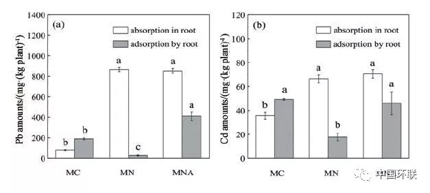 圖6 不同化學(xué)試劑對植物根吸附和吸收Pb和Cd的影響