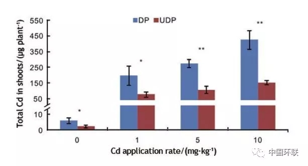 圖7 去頂(DP)和不去頂(UDP)處理植物對Cd吸收
