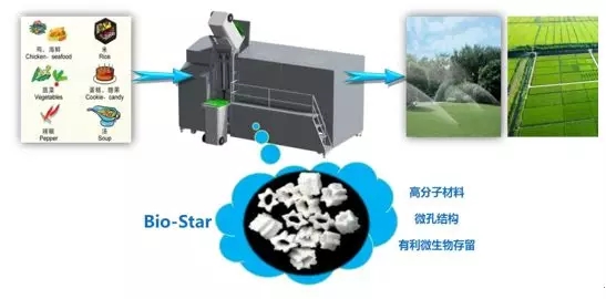 以仿動(dòng)物胃部消化功能,把垃圾分解。專利配方酶及微生物“ThinkZyme Plus MD 158”,及獨(dú)家研發(fā)的Bio-Star能有效于24小時(shí)內(nèi)把餐廚分解,減量率>95%。分解的副產(chǎn)物以環(huán)保水質(zhì)排出,可直接排放至市政管網(wǎng)或作為液態(tài)肥供給給園林。