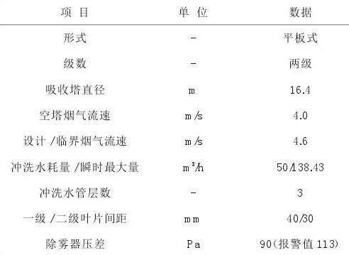 某發(fā)電公司660MW超臨界燃煤空冷機組,鍋爐型號:DG2100/25.4-II2,配套建設有石灰石-石膏濕法脫硫裝置。每座吸收塔頂部安裝兩級水平布置的除霧器,參數(shù)見表1。