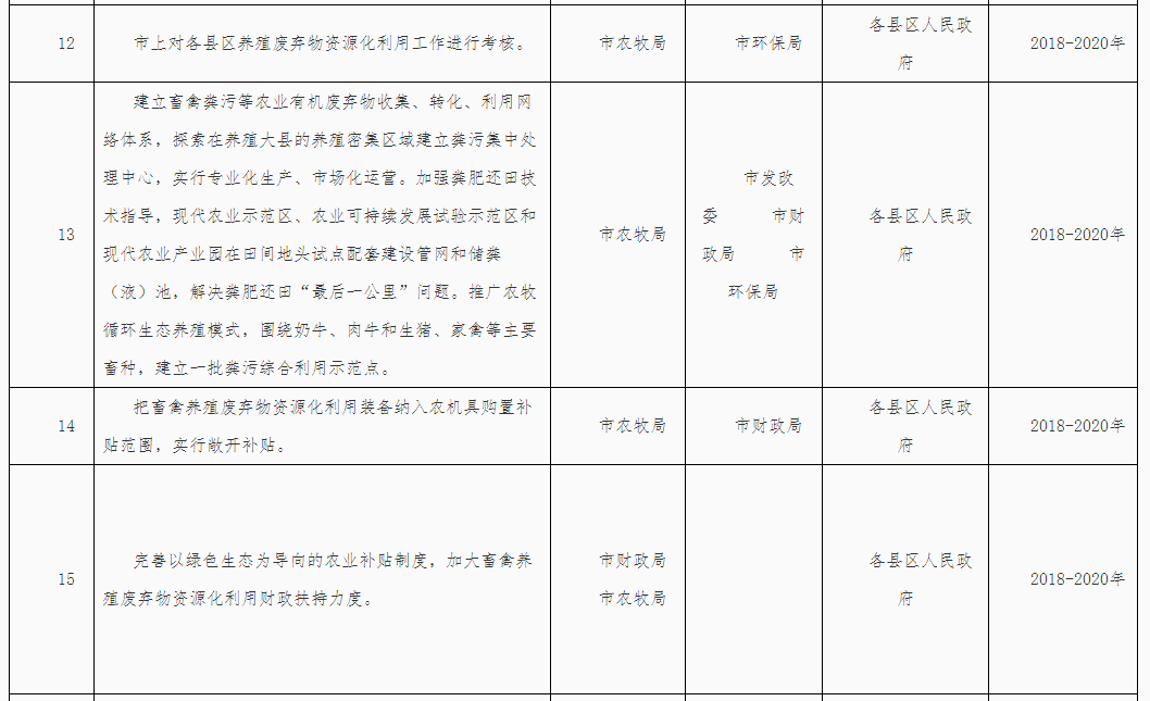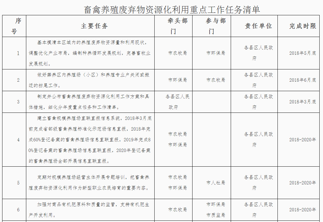 (三)落實(shí)屬地管理責(zé)任。落實(shí)“菜籃子”市長(zhǎng)負(fù)責(zé)制,堅(jiān)持保供給與保環(huán)境并重,統(tǒng)籌畜產(chǎn)品供給和畜禽糞污治理。各縣區(qū)政府對(duì)本行政區(qū)域內(nèi)的畜禽養(yǎng)殖廢棄物資源化利用工作負(fù)總責(zé),要結(jié)合本地實(shí)際,依法明確部門職責(zé),構(gòu)建責(zé)任體系,健全工作機(jī)制,加大資金投入,完善政策措施,強(qiáng)化日常監(jiān)管,確保各項(xiàng)任務(wù)落實(shí)到位。各縣區(qū)人民政府應(yīng)于2018年3月底前制定并公布畜禽養(yǎng)殖廢棄物資源化利用工作方案,細(xì)化分年度的重點(diǎn)任務(wù)和工作清單,并抄送市農(nóng)牧局備案。