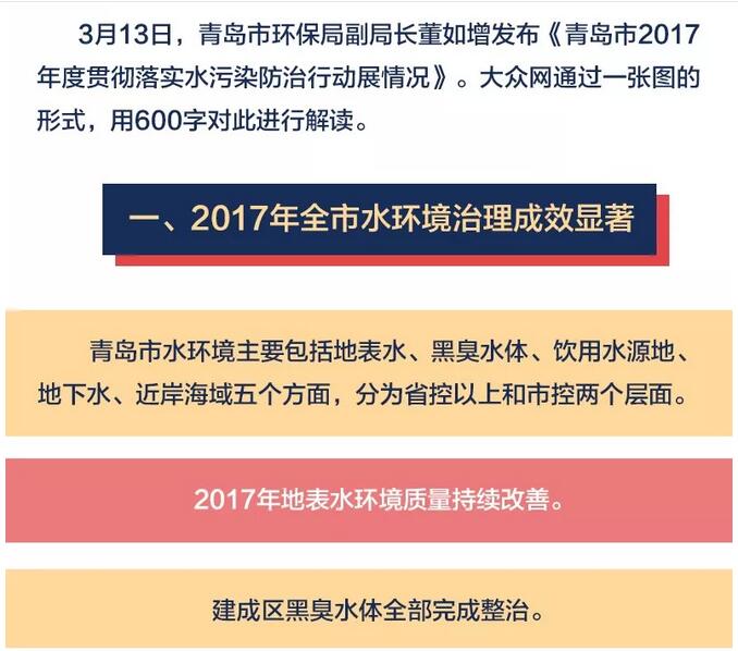 水污染防治行動(dòng)展情況》。青島市水污染防治情況如何,大眾網(wǎng)通過一張圖的形式,用600字對(duì)此進(jìn)行解讀。