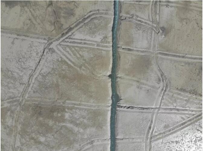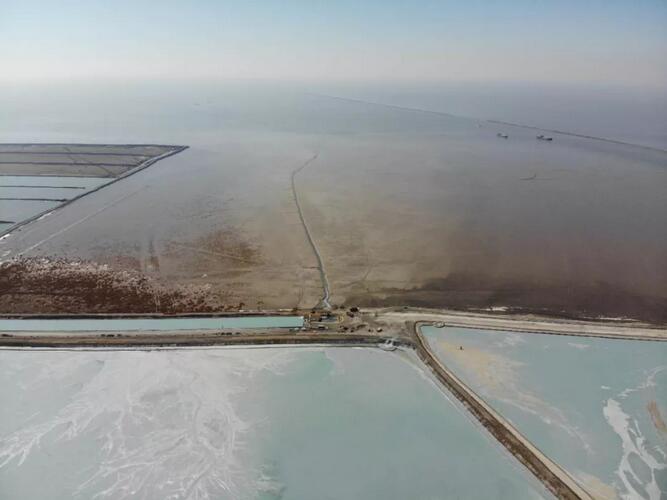唐山市曹妃甸工業(yè)區(qū)的一個入海排污口,污水流過灘涂形成溝壑。 羅逸爵丨攝