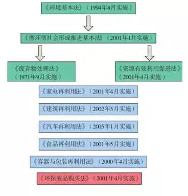 第一層次為基礎(chǔ)層次,明確建立循環(huán)社會(huì)的政策措施:減少垃圾產(chǎn)生量,以法規(guī)形式規(guī)定了垃圾產(chǎn)生者責(zé)任等;第二層次為綜合性法律;第三層次是根據(jù)產(chǎn)品的性質(zhì)具體規(guī)定的法律法規(guī),包括《家電再利用法》、《建筑再利用法》等等,由此,日本垃圾管理的法制體系趨于完善,對(duì)垃圾的生產(chǎn)、分類回收、處理及再利用的整體管理體系的建立和運(yùn)行起到了制度保障。