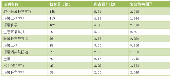 《環(huán)境科學(xué)》的影響因子位居TOP10高發(fā)文期刊的榜首——復(fù)合影響因子為2.870,載文量以107篇位列第三。該期刊創(chuàng)刊于1976年,是我國環(huán)境科學(xué)領(lǐng)域最早創(chuàng)刊的學(xué)術(shù)性期刊,并在國內(nèi)外科技界有較大影響,被國內(nèi)外很多重要檢索系統(tǒng)收錄,如EI、MEDLINE、CSTPCD、維普等。