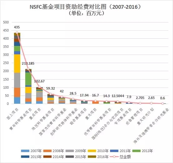 圖9:國家自然科學(xué)基金項(xiàng)目經(jīng)費(fèi)年度趨勢圖(2007-2016)