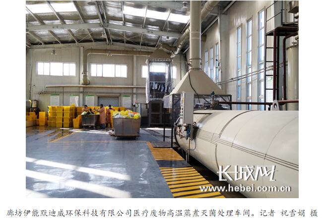 霸州市衛(wèi)計局副局長任宇輝對記者說,為解決醫(yī)療廢物的集中處置問題,霸州與廊坊伊能默迪威環(huán)??萍加邢薰竞献?,新建了霸州醫(yī)療廢物處置項目。該項目投資1320萬元,設(shè)計日處理能力10噸,2017年10月正式投入運營,主要負(fù)責(zé)處置霸州市和固安、永清的醫(yī)療廢物,同時還應(yīng)急處置廊坊市積存的醫(yī)療廢物。