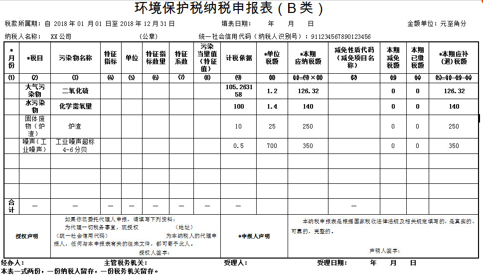 2. 環(huán)境保護(hù)納稅申報(bào)計(jì)算表(附表一)(大氣污染物適用):適用于污染物為大氣污染的申報(bào)計(jì)算。