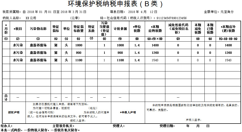 7. 環(huán)境保護(hù)稅納稅申報(bào)表(B表):適用于除A類(lèi)申報(bào)之外的其他納稅人,包括按次申報(bào)納稅人、適用環(huán)境保護(hù)稅法所附《禽畜養(yǎng)殖業(yè)、小型企業(yè)和第三產(chǎn)業(yè)水污染物當(dāng)量值》表的納稅人和采用抽樣測(cè)算方法計(jì)算污染物排放量的納稅人。