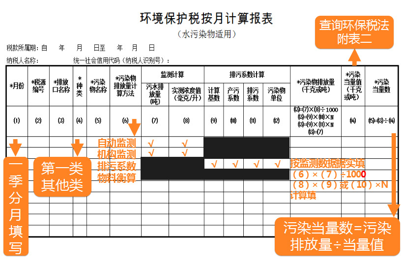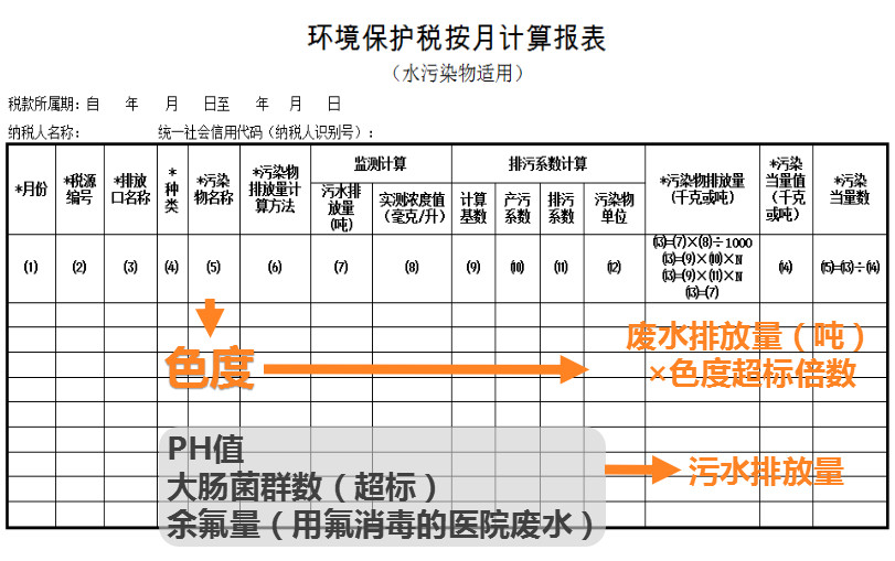 3. 環(huán)境保護(hù)納稅申報(bào)計(jì)算表(附表二)(水污染物適用):適用于污染物為水污染的申報(bào)計(jì)算。