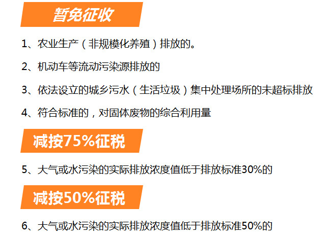 大氣或水污染:(《環(huán)保稅法》第十三條)納稅人排放應(yīng)稅大氣污染物或者水污染物的濃度值低于國(guó)家和地方規(guī)定的污染物排放標(biāo)準(zhǔn)30%的,減按75%征收環(huán)境保護(hù)誰(shuí)。納稅人排放應(yīng)稅大氣污染物或者水污染物的濃度值低于國(guó)家和地方規(guī)定的污染物排放標(biāo)準(zhǔn)50%的,減按50%征收環(huán)境保護(hù)稅。