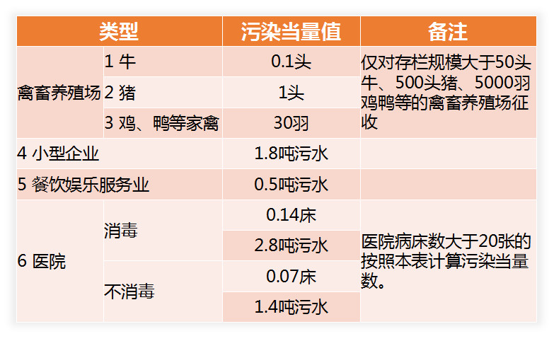 (本表僅適用于計(jì)算無(wú)法進(jìn)行實(shí)際檢測(cè)或者物料衡算的禽畜養(yǎng)殖業(yè)、小型企業(yè)和第三產(chǎn)業(yè)等小型排污者的水污染當(dāng)量數(shù))