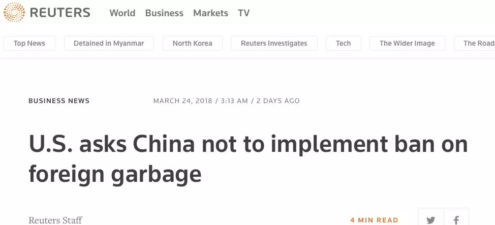 搞事情!美國總統(tǒng)特朗普要求中國取消對“洋垃圾”的進(jìn)口禁令。中國政府回應(yīng):自己產(chǎn)生的危險(xiǎn)廢物和其他廢物自己來消化。