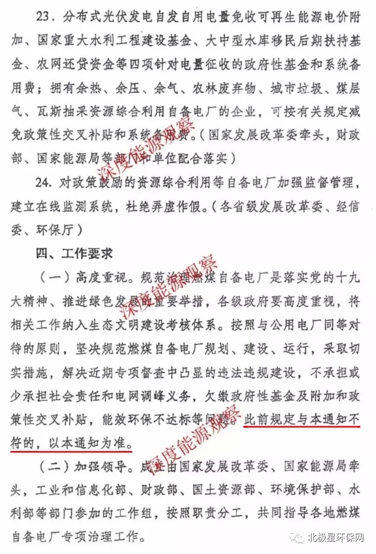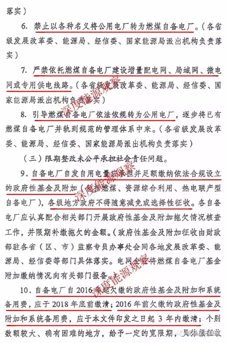 全面梳理燃煤自備電廠的違規(guī)準(zhǔn)備、批建不符等各類問題,4月20號前上報發(fā)改委、工信部、能源局。對于違規(guī)在建的燃煤燃煤自備電廠,一律停建!中發(fā)9號文之后,未經(jīng)批準(zhǔn)或未未列入規(guī)劃的新建燃煤自備電廠,一律停建、停運!