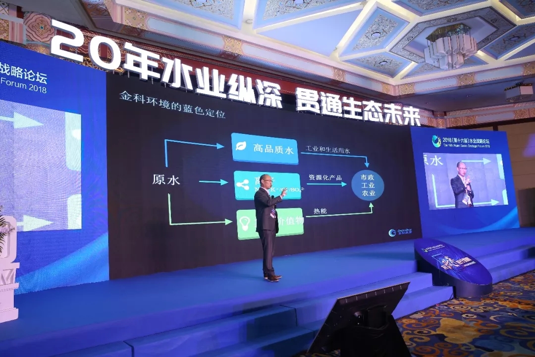 本次論壇以“將改革進(jìn)行到底——二十年水業(yè)縱深貫通生態(tài)未來”為主題,回顧水業(yè)改革歷程,講述變革中企業(yè)戰(zhàn)略轉(zhuǎn)型背后的故事,立足民生預(yù)判水業(yè)變革方向。張慧春董事長(zhǎng)從公司的本質(zhì)——?jiǎng)?chuàng)造價(jià)值出發(fā),提出從“環(huán)境治理”向“價(jià)值物回收和資源化”,即“綠色經(jīng)濟(jì)”向“藍(lán)色經(jīng)濟(jì)”的戰(zhàn)略轉(zhuǎn)變思路,介紹了金科環(huán)境“通過水中價(jià)值物回收和資源化解決水污染和水短缺問題”的戰(zhàn)略定位。瞄準(zhǔn)這一定位,金科環(huán)境聚焦原水中包括高品質(zhì)水、離子和其他價(jià)值物在內(nèi)的一切資源,通過其原創(chuàng)的藍(lán)色生態(tài)商業(yè)模式,為客戶提供工程建設(shè)技術(shù)、數(shù)字雙胞胎及運(yùn)營(yíng)服務(wù)和各類資源化產(chǎn)品。