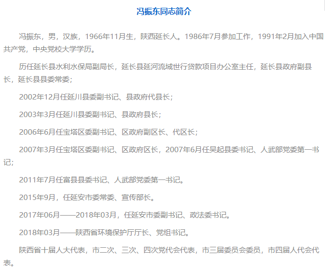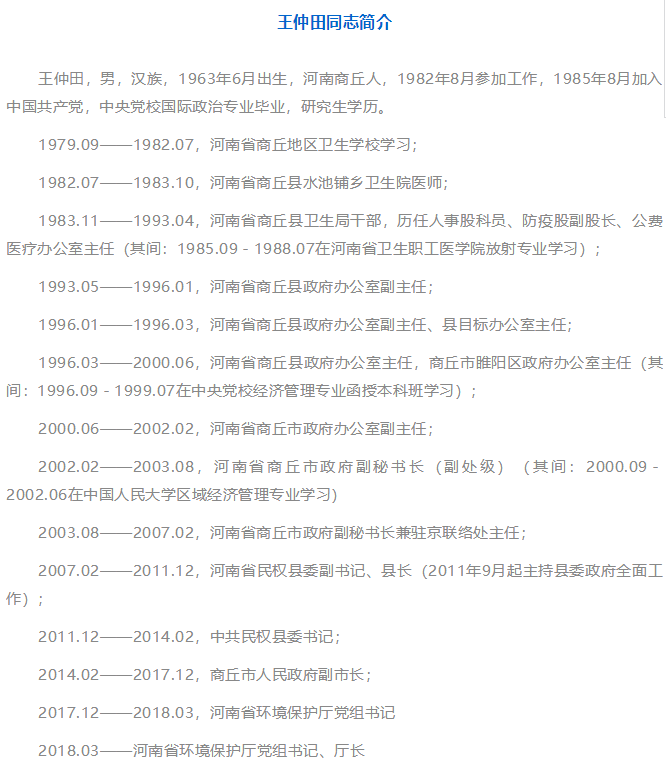 此外,還有一些來自地方黨委政府的新廳長,陜西省環(huán)保廳廳長馮振東的上一個(gè)職務(wù)是陜西省延安市委副書記、政法委書記;2018 年3 月被任命的河南省環(huán)保廳廳長王仲田,此前曾任河南省商丘市副市長。