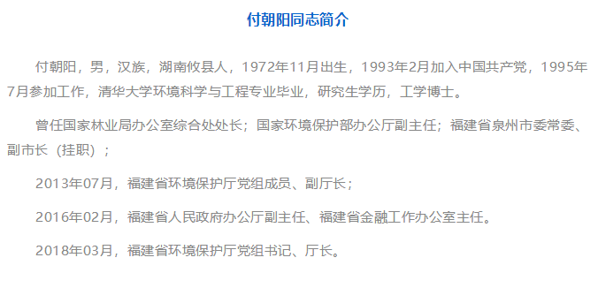 付朝陽 任福建省環(huán)境保護(hù)廳廳長