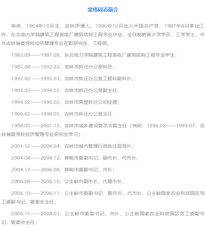 2月9日,吉林省第十三屆人民代表大會(huì)常務(wù)委員會(huì)第一次會(huì)議通過,任命柴偉為吉林省環(huán)境保護(hù)廳廳長。