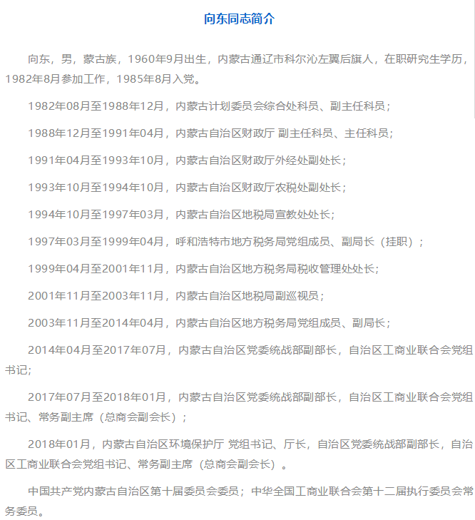 向東 任內(nèi)蒙古自治區(qū)環(huán)保廳廳長