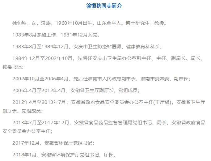 徐恒秋 任安徽省環(huán)境保護(hù)廳廳長