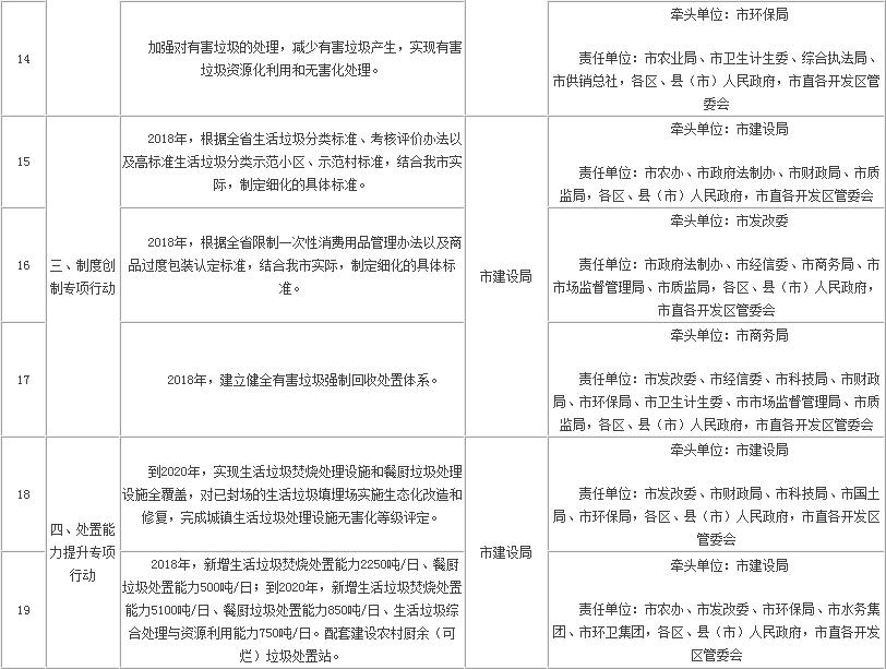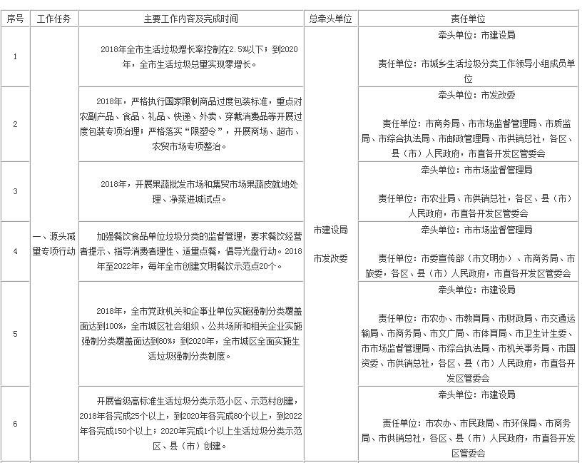 紹興市生活垃圾分類五大專項行動責任分解表