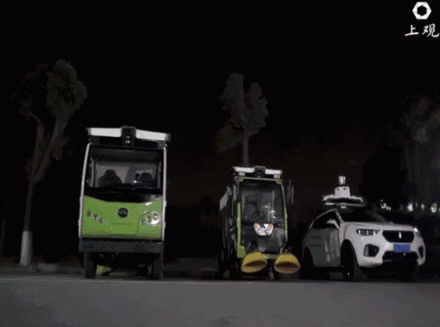 又是在上海,全球首個(gè)無(wú)人駕駛清潔車隊(duì)在松江誕生,深夜時(shí)分,清掃車睜開“眼睛”,自動(dòng)蘇醒,悄無(wú)聲息地將所在園區(qū)的道路清掃干凈。