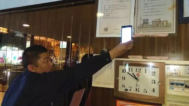 ③ 收運員要打開手機內(nèi)的專用軟件,掃描收運對象店堂內(nèi)的二維碼,記入具體信息,才能去下一站,以防中間環(huán)節(jié)有人“玩貓膩”——一些沒有被記錄的“地溝油”偷偷進入了非正規(guī)環(huán)節(jié)。