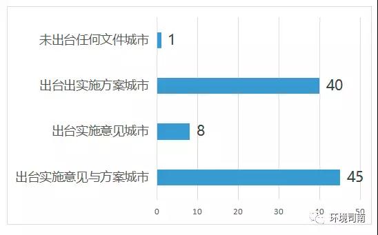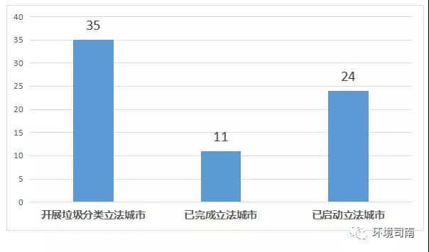 國家層面的“強制性”和“制度化”,在地方政府的執(zhí)行中得到深入貫徹和具體體現(xiàn)。截止4月27日,46座試點城市中,除西藏自治區(qū)日喀則市外,其他45個城市均已先后出臺垃圾分類實施意見或?qū)嵤┓桨?,并且?5個城市啟動了垃圾分類立法工作,其中11個城市已完成垃圾分類地方立法。