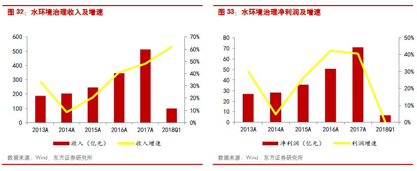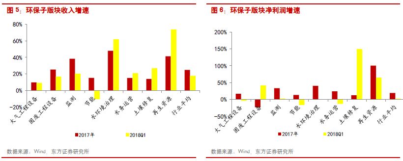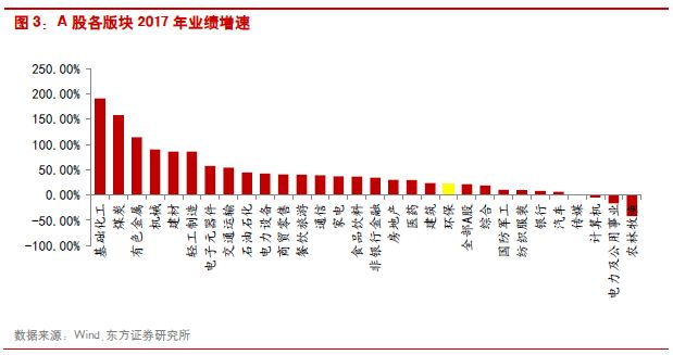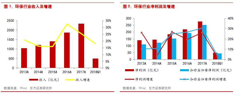 從整個A股市場來看,環(huán)保行業(yè)2017年的業(yè)績增速為26.06%,高于全部A股21.84%的增速,處于中等偏上水平。
