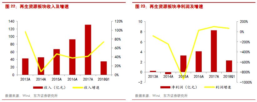 再生資源:再生資源板塊2017年收入增速為41.37%,歸母凈利潤增速達到100.33%。個股層面,受益于鈷金屬的漲價,格林美的業(yè)績實現(xiàn)快速增長;而中再資環(huán)的增長則主要來自于拆解量的增長和清理庫存。
