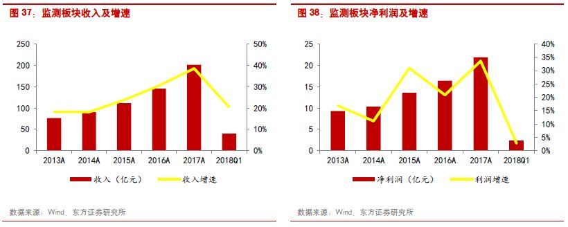 監(jiān)測板塊個股中不乏高成長企業(yè)。2017年,先河環(huán)保由于網(wǎng)格化監(jiān)測訂單增長實現(xiàn)了78.68%的業(yè)績增長,天瑞儀器、理工環(huán)科受并表因素影響,利潤增速均超過了80%。