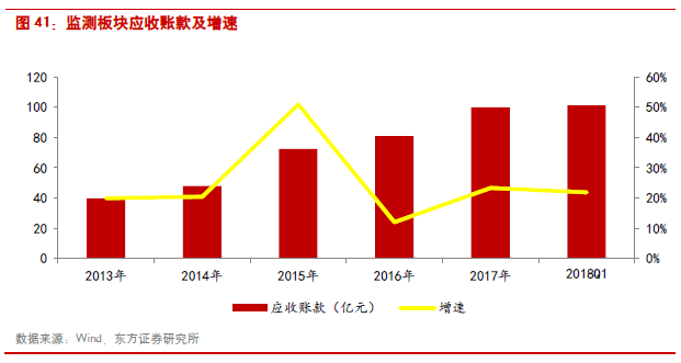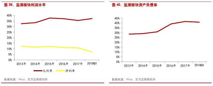 受益于全國范圍內的環(huán)保督查帶動新的監(jiān)測需求,監(jiān)測板塊維持較高的行業(yè)景氣度。2017年收入同比增長38.45%,歸母凈利潤同比增長33.58%。受銷售費用、財務費用增加影響,凈利率略下滑至10.87%。由于監(jiān)測企業(yè)基本通過外延并購來拓展產品和業(yè)務范圍,所以融資需求逐漸增加,行業(yè)的資產負債率由2016年的39.04%略上升到2017年的41.55%。
