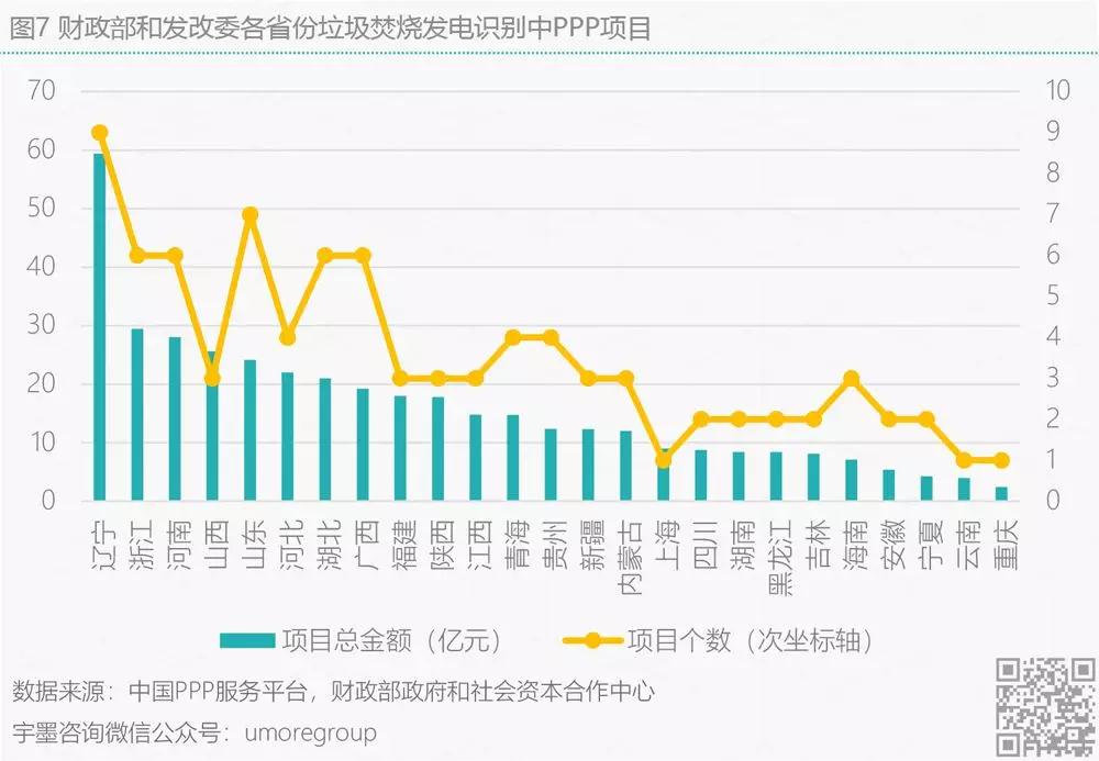 宇墨統(tǒng)計了財政部各省份PPP項目儲備庫中還在識別階段的垃圾焚燒發(fā)電類PPP項目以及發(fā)改委各省份垃圾焚燒發(fā)電發(fā)起中的PPP項目,目前來看這些項目還處于財政部門、發(fā)改委部門、行業(yè)主管以及社會資本共同判斷該項目本身是否與PPP模式相契合的階段,如果判定不契合將不會采用PPP模式。通過該數(shù)據(jù),可預(yù)先了解對于垃圾焚燒發(fā)電有采購需求的省份,綜合來看,遼寧、浙江、河南‘、山西、山東這五個地方在垃圾焚燒發(fā)電領(lǐng)域項目機(jī)遇較多。從項目發(fā)起地市來看,在一線城市發(fā)電廠建設(shè)逐漸飽和的情況下,目前垃圾焚燒發(fā)電的未來項目機(jī)遇多分布在國內(nèi)各省會的三四線城市。