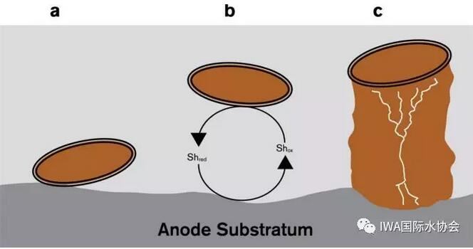 生物膜有諸多優(yōu)點(diǎn),但它目前仍不能自發(fā)完成人為設(shè)定的任務(wù),例如對(duì)于低水溶性的底物和內(nèi)在生物降解性差的有機(jī)化合物等,傳統(tǒng)的惰性生物膜媒介,例如砂、陶瓷或者塑料等對(duì)此無(wú)能為力。對(duì)于這種情況,Rittmann教授提出了“活性基質(zhì)(active substrata)”的概念,他認(rèn)為其中一種可能的解決方式是引入低水溶性底物,包括a)氫氣 -- 一種低溶解度的電子供體,b)電化學(xué)電池的陽(yáng)極--當(dāng)它與生物膜恰當(dāng)作用的時(shí)候,它能成為電子受體;而第二種解決方案是提供一個(gè)能將頑固分子轉(zhuǎn)化成可降解物質(zhì)的表面來(lái)處理難降解有機(jī)物。