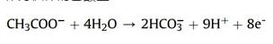 Rittmann教授認(rèn)為MxC表現(xiàn)形式的關(guān)鍵在于陰極,因?yàn)槊糠N形式都由在陰極處的反應(yīng)來(lái)確定,而陽(yáng)極反應(yīng)基本上是相同的,例如對(duì)于作為供體的乙酸鹽:
