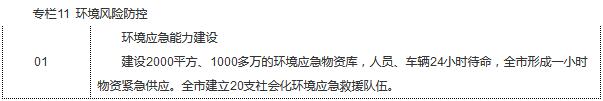 強化環(huán)境應(yīng)急隊伍建設(shè)和物資儲備。探索政府、企業(yè)、社會多元化環(huán)境應(yīng)急保障力量共建模式,開展環(huán)境應(yīng)急隊伍標(biāo)準(zhǔn)化、社會化建設(shè)。以石化、化工、重金屬、印染、集中式污水處理、危廢處置等行業(yè)為重點,加強企業(yè)和園區(qū)環(huán)境應(yīng)急物資儲備,構(gòu)建市級環(huán)境應(yīng)急物資庫。積極推動環(huán)境應(yīng)急能力標(biāo)準(zhǔn)化建設(shè)。
