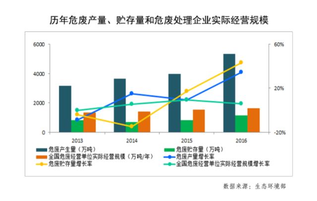 2016年,新危廢名錄發(fā)布,推動(dòng)危廢科學(xué)化、精細(xì)化管理;同年11月,《“十三五”生態(tài)環(huán)境保護(hù)規(guī)劃》發(fā)布,將危廢項(xiàng)目納入地方市政基礎(chǔ)設(shè)施規(guī)劃,進(jìn)一步強(qiáng)化了地方政府治理危廢的積極性。