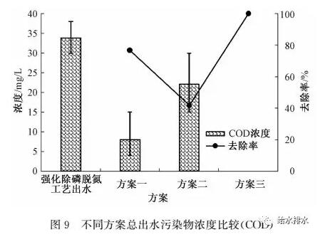 2.1.1不同工藝方案對(duì)COD的去除效果