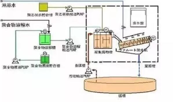 為了更好地提高氣浮處理效果,在回流加壓溶氣氣浮工藝中向廢水中投入某種絮凝劑,使水中難沉淀的膠體狀懸浮顆?;蛉榛廴疚锸Х€(wěn),在互相碰撞的作用下,聚集、聚合或搭接形成較大的顆粒或絮狀物,從而使得污染物能夠更容易下沉或上浮而被去除。